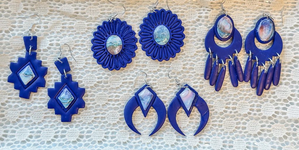 Discover a new level of style with Magnolia Blues! These unique clay earrings feature genuine polymer clay, beautiful bezel designs, and stunning faux abalone details. Perfect for adding a touch of boho chic to any outfit. Upgrade your accessory game with Magnolia Blues today!