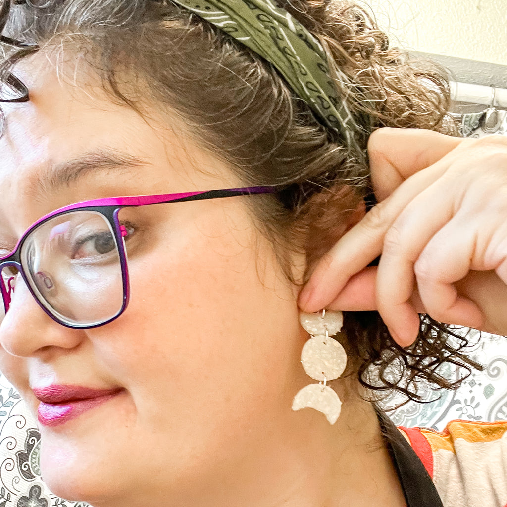 These mini moon phase earrings are a smaller version of the moon phase statement earrings.