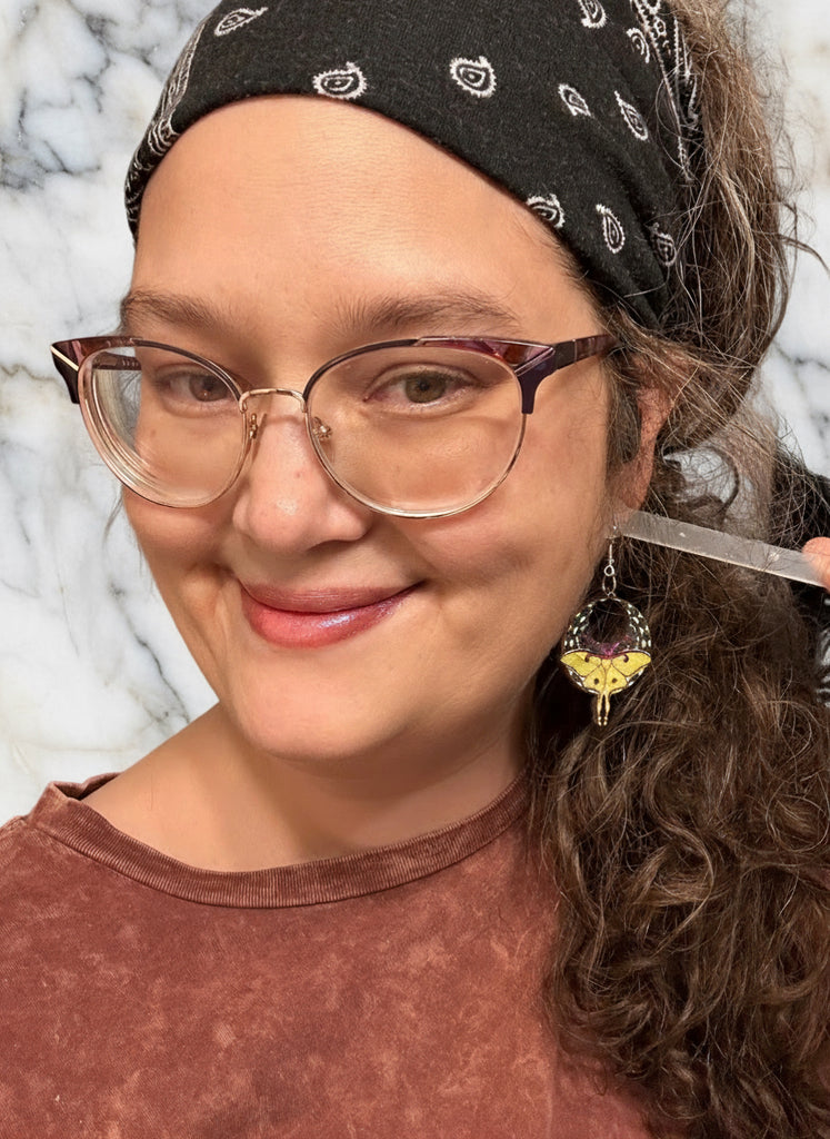 Indulge in the enchanting elegance of our Luna Moth Drops. These delicate earrings feature hand painted Luna moths, inspired by the glamour of art deco. The color shifting glitter watercolor adds a touch of magic, while the 925 silver plated findings ensure luxury and sophistication in every detail. Elevate your style with these exclusive pieces.