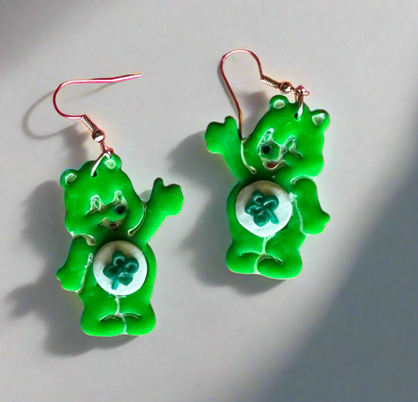 Time travel back to your childhood with these adorable Carebear Clay Earrings. Made with high-quality polymer clay and silver plated hooks, these earrings will add a touch of charm to any outfit. Bring a little nostalgia and playfulness to your jewelry collection today! (Perfect for the young at heart!)