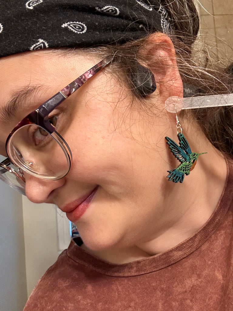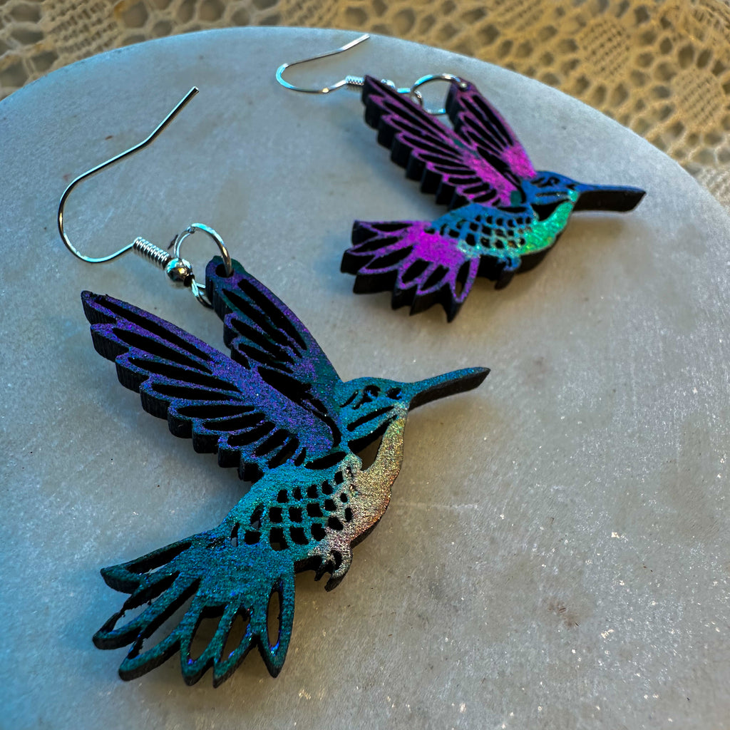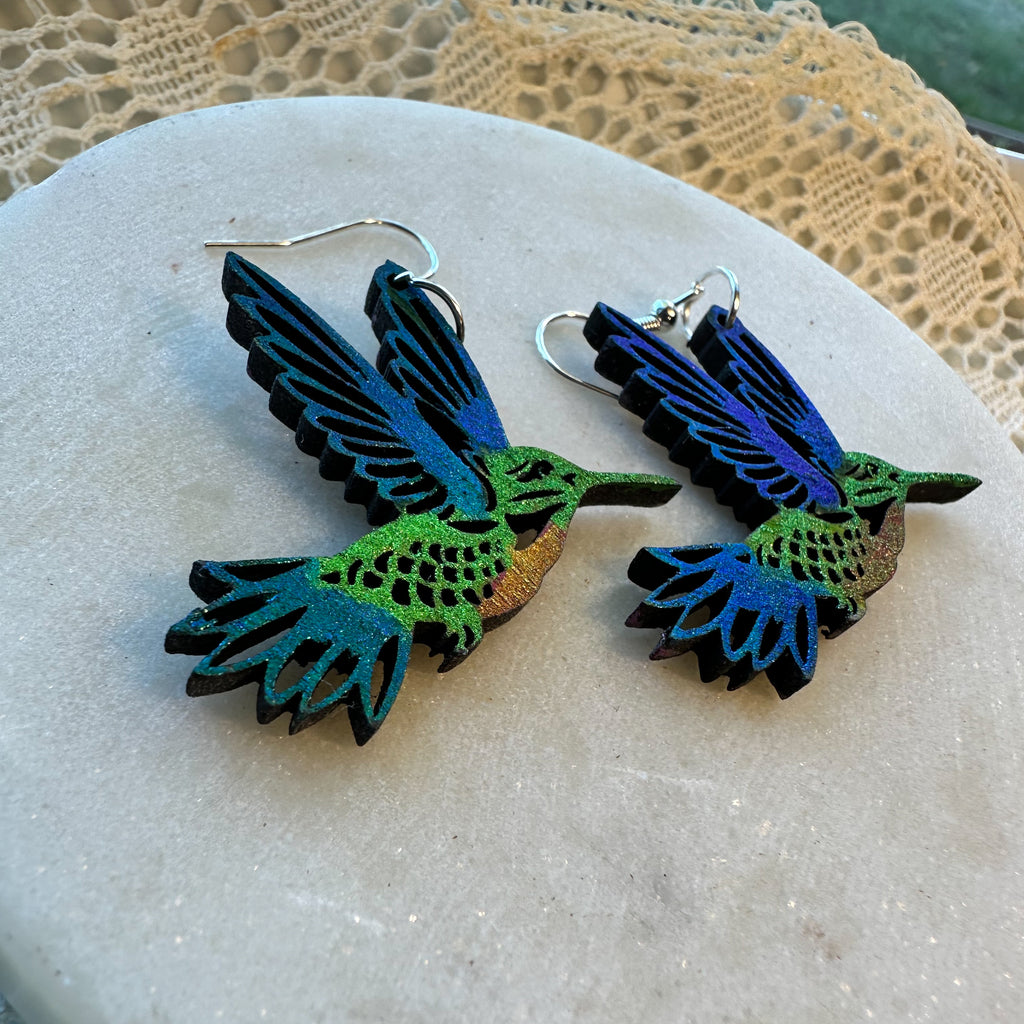 Introducing our Color Shift Hummingbirds, the most unique and playful earrings you'll ever wear! These lightweight beauties feature hand-painted hummingbirds with a mesmerizing color-shifting effect. The 925 silver plated findings ensure quality and style. Add a touch of whimsy to any outfit with these one-of-a-kind earrings.