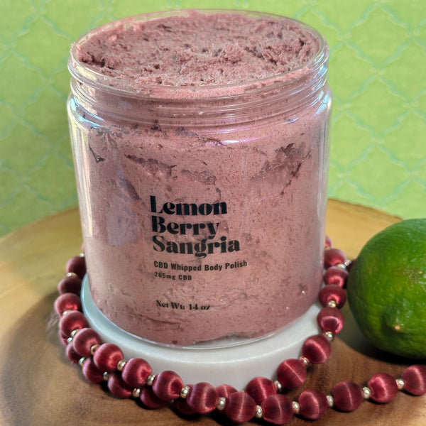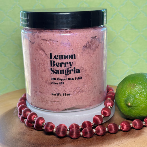 Indulge in the luxurious and nourishing Lemon Berry Sangria: Hemp Whipped Body Polish. Infused with castor oil and hemp oil, this whipped body polish exfoliates with Himalayan salt, leaving your skin sparkly and super soft. Pamper yourself with the benefits of a spa day in the comfort of your own home!