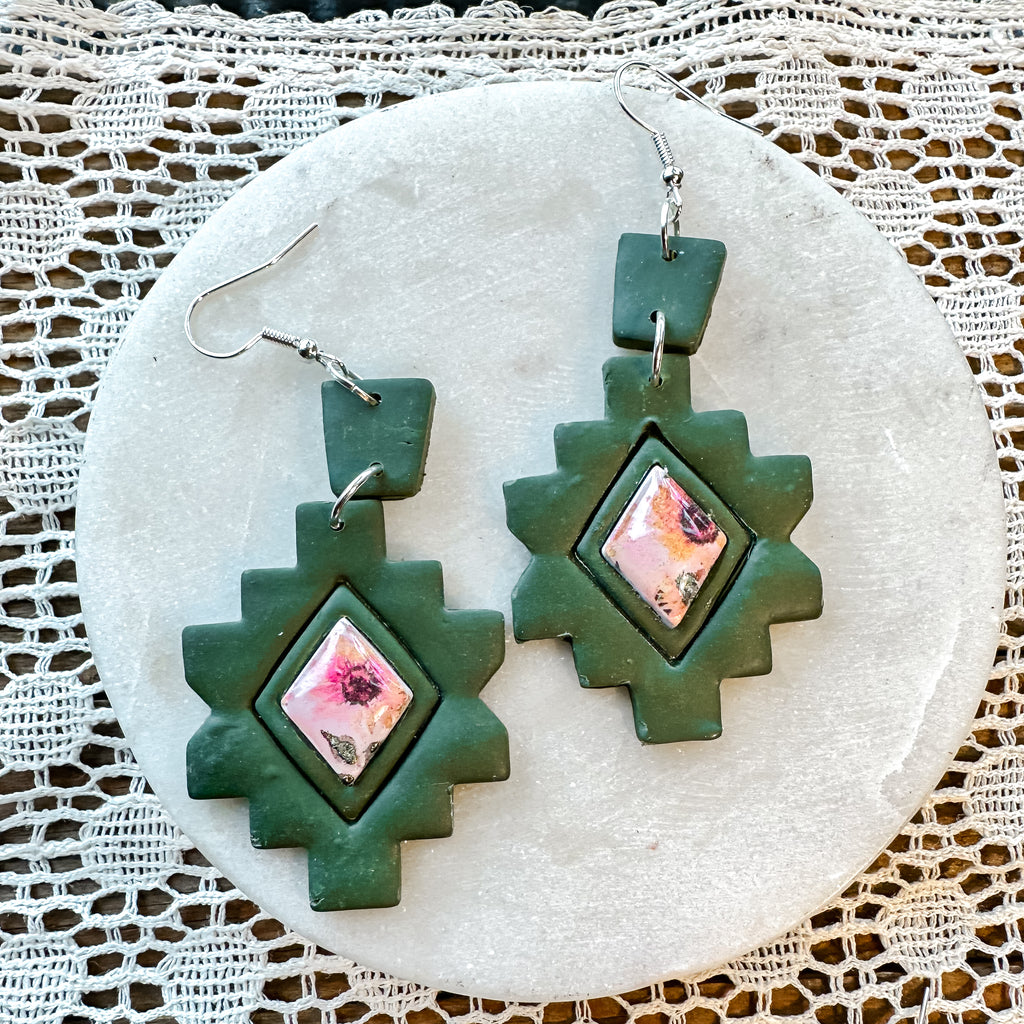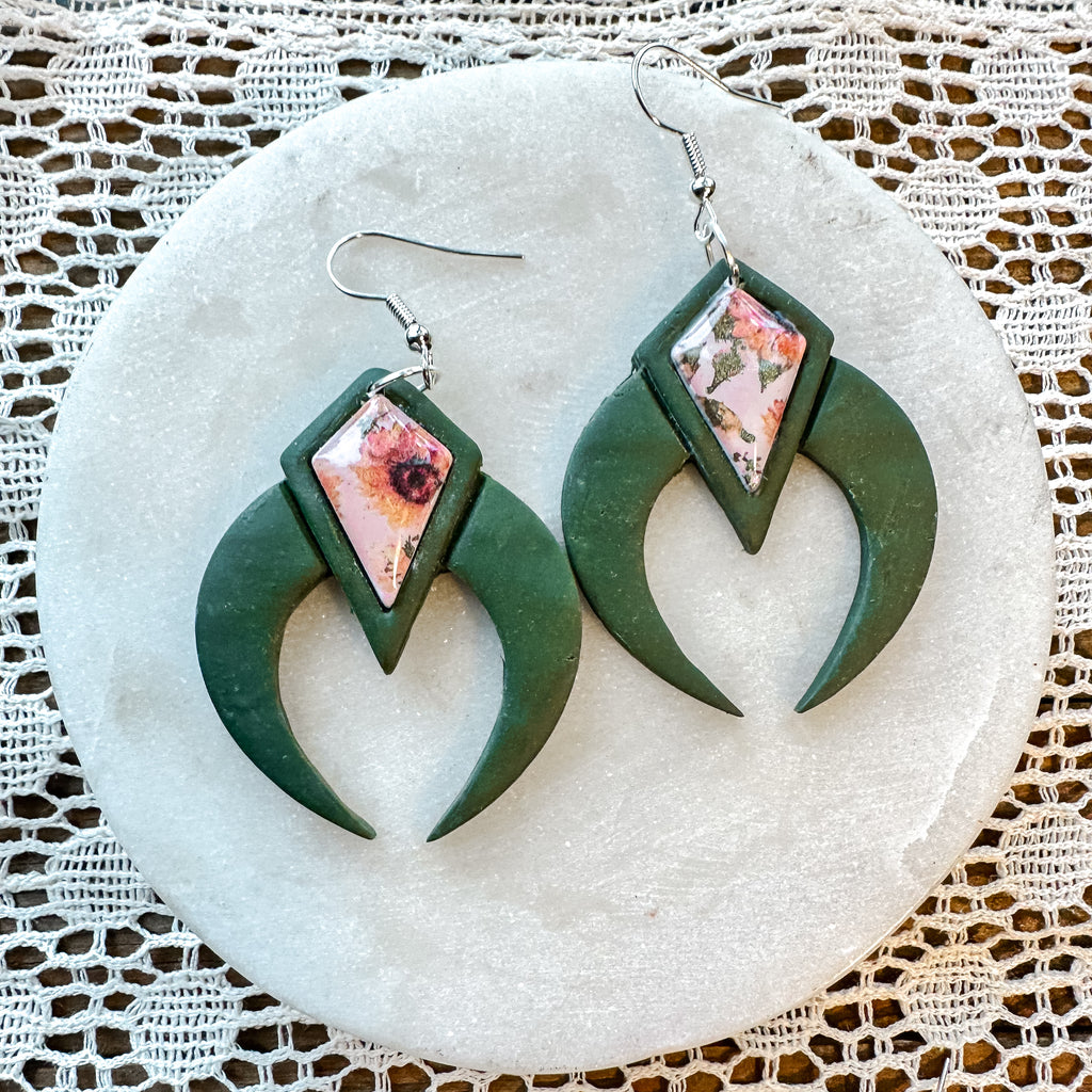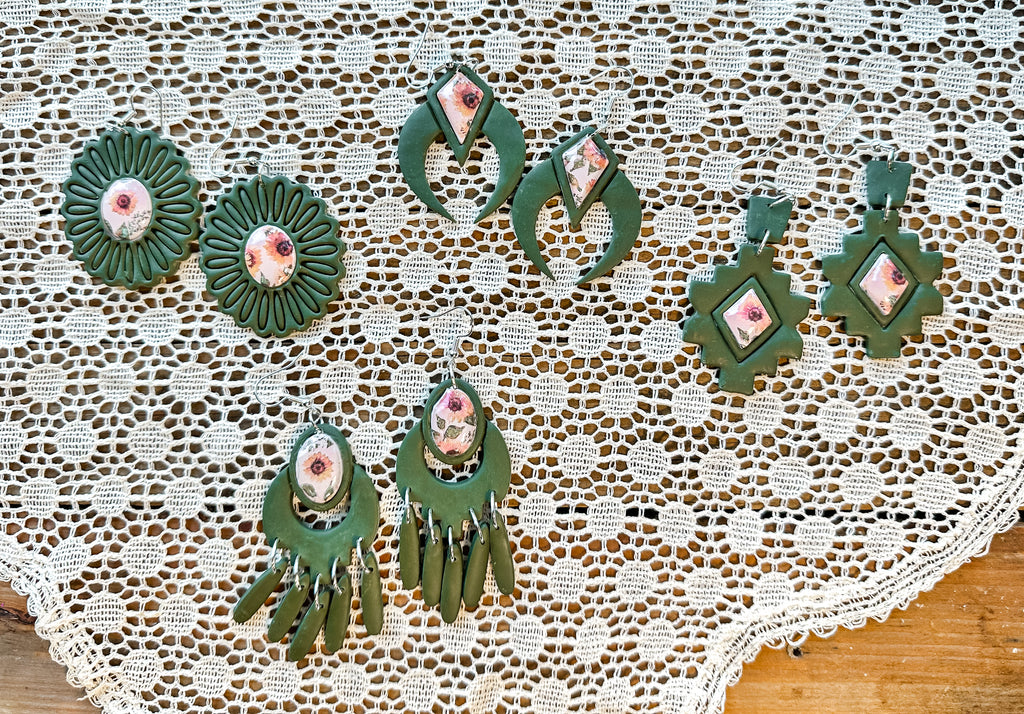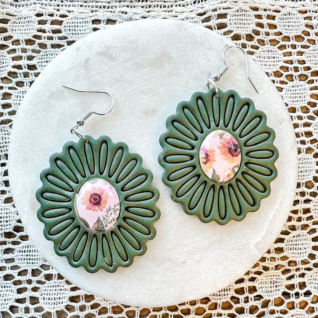 Add a touch of whimsy to your look with Sunflower Meadows! Our olive green polymer clay earrings feature sunflower faux stones in bezels, hung on lightweight 925 silver plated findings. A playful and unique accessory for any outfit. (Limited stock, snag a pair before they're gone!)