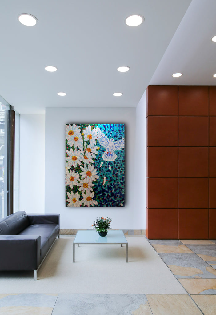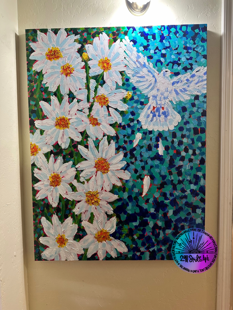 This painting is a symbolic representation of the beautiful unraveling of discovering the supernatural world via my relationship with the Holy Ghost.